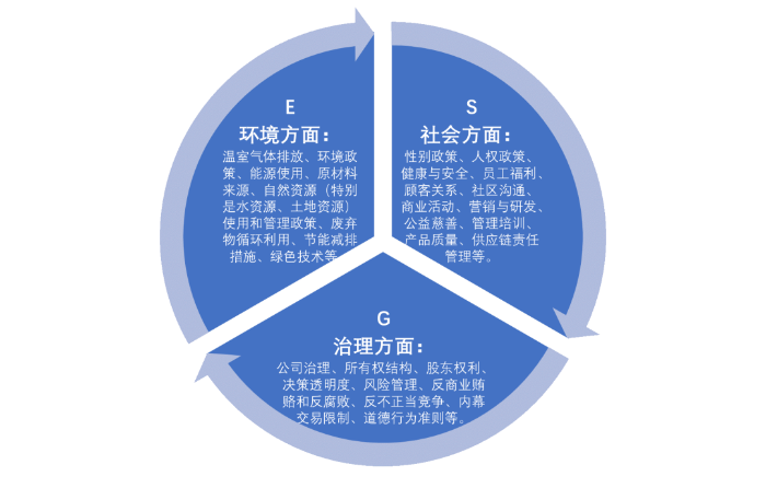 ESG是英文Environmental(环境)、Social(社会)和Governance(治理)的缩写,是一种关注企业环境、社会、治理绩效而非财务绩效的投资理念和企业评价标准。基于ESG评价,投资者可以评估其投资行为和企业(投资对象)在促进经济可持续开展、履行社会责任等方面的贡献。
