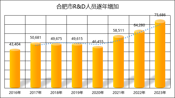 合肥市2023年常住人口比2022年增长21.9万人,较2020年增加48.3万人,较2013年增加181.3万人。2022年和2023年,合肥新招引高校毕业生分别在30万人和35万人左右。净增常住人口、新招引毕业生迭创新高的背后,是合肥这些年产业集聚的必然结果,对人才的吸引力正在大规模提升。
