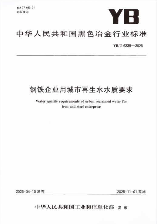中国国际工程咨询有限公司参与编制的行业标准YB/T 6338-2025《钢铁企业用城市再生水水质要求》于2025年11月1日正式实施。(参编人员:张建红)