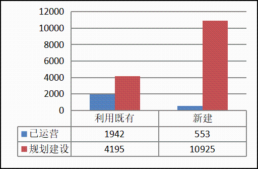 自相关文件发布以来,各省市持续推进市域(郊)铁路建设,取得了一定的成绩。据有关资料统计,截至2019年,我国市域(郊)铁路已运营线路里程约2495公里,其中利用既有线路1942公里,新建线路553公里。拟规划线路里程约15120公里,其中利用既有线路4195公里,新建线路10925公里。已运营和规划建设市域(郊)铁路里程见图1所示。
