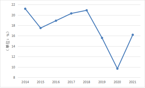 (一)数字经济增速出现放缓。近年来,在全球地缘局势紧张、疫情反复及强监管的影响下,我国数字经济的增长势头出现了放缓。数据表明,2014年~2018年间,我国数字经济的平均增速接近20%,2019年~2021年间,数字经济的平均增速为13.8%,尤其是2020年,增速仅为9.6%,较上一年下滑5.9个百分点。2021年同比名义增长16.2%,但与2017~2018年间陆续在维持20%以上的名义增速,2002年~2018年间实现了208倍的历史跨越相比,仍存在下滑趋势。