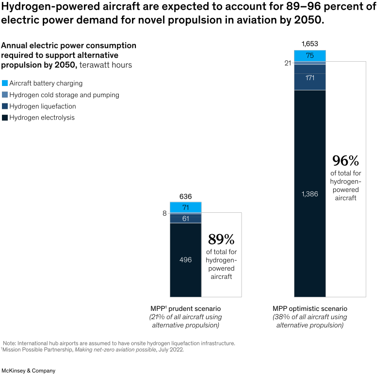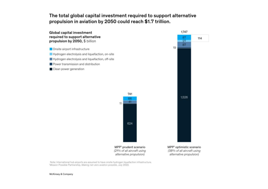 随着对解决航空业气候影响的解决方案的寻求变得更加迫切,人们对例如氢气、电池电力和混合电力驱动飞机等新型推进技术产生了极大的兴趣。根据MPP对航空业能源的估计,到2050年,电池电力和氢动力飞机可能占所有飞机的21%-38%,占该行业整体能源需求的15%-34%。虽然时间上可能感觉很遥远,但这一新技术将在这十年内出现。 针对这些基础设施的变化,以及机场和其他利益相关方如何开始准备,仍存在不确定性。近期,麦肯锡发布了《瞄准低碳:为电池和氢动力飞机给予基础设施》的报告,旨在帮助人们分析影响新型推进器的一些关键考虑因素。